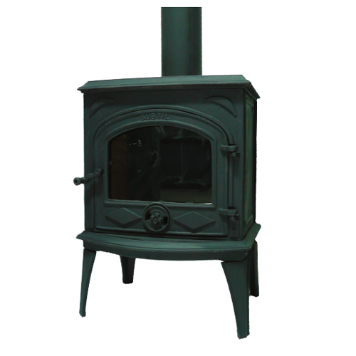 Descrição: Salamandra a lenha toda em ferro fundido com vidro na porta