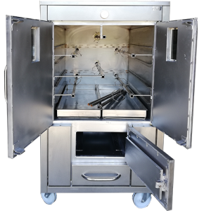 | Descrição: | Forno vertical com grande capacidade calorifica, podendo ter a valéncia de assar 6 leitões em simultanio, esta peça pode ainda ser conjugada com churrasqueiras em espaços abertos ou fechados. |