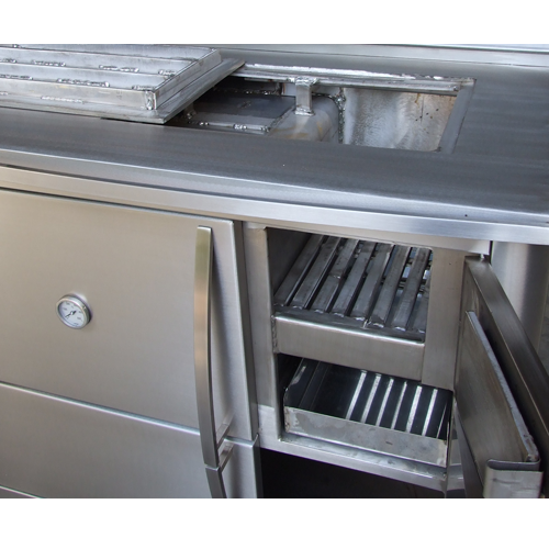 Descrição: Pormenor de fogão a lenha em 100% inox