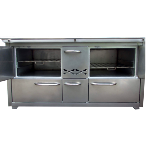 | Modelo: | Fogão a lenha industrial 170cm com 2 fornos inox mesa de ferro |